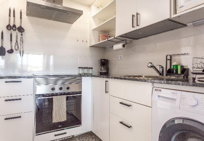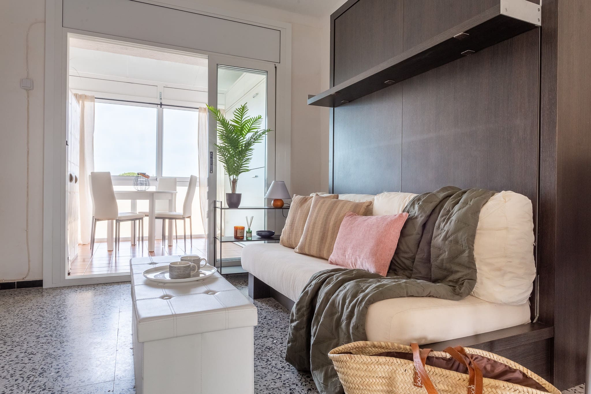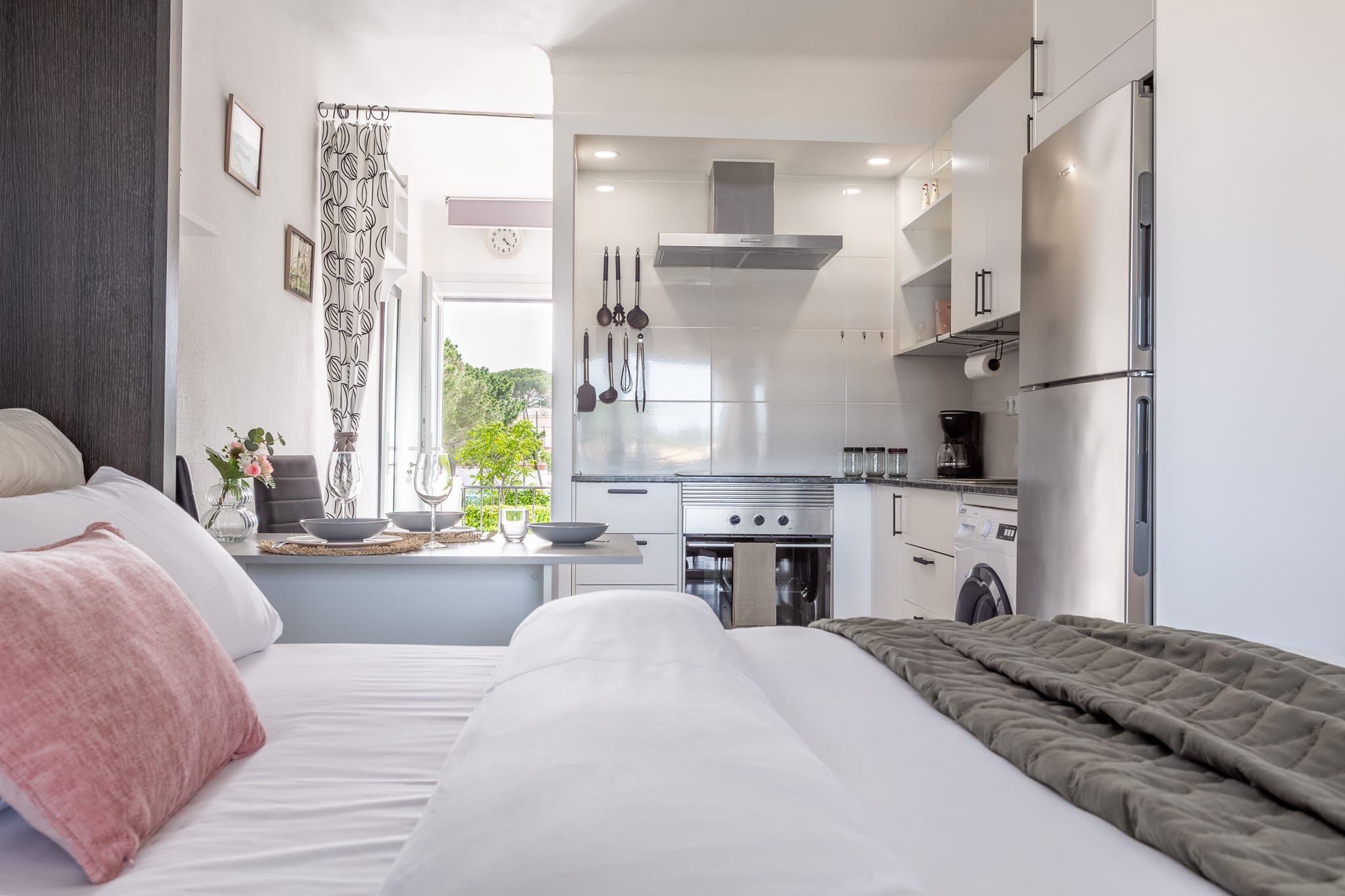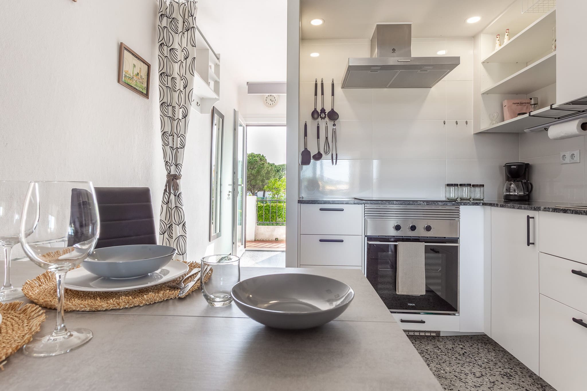 The studio apartment is located 700 meters from Riells beach and the promenade with bars, restaurants, shops. This is a compact and comfortable space with everything you need for a carefree holiday: a comfortable mattress and pillows, TV, a kitchen equipped with everything necessary for cooking, a dining table, free Wi-Fi. The studio has its own bathroom with a shower and terrace. There is a parking lot in the courtyard of the house, where you can easily park your car. 400 meters away there is a supermarket.