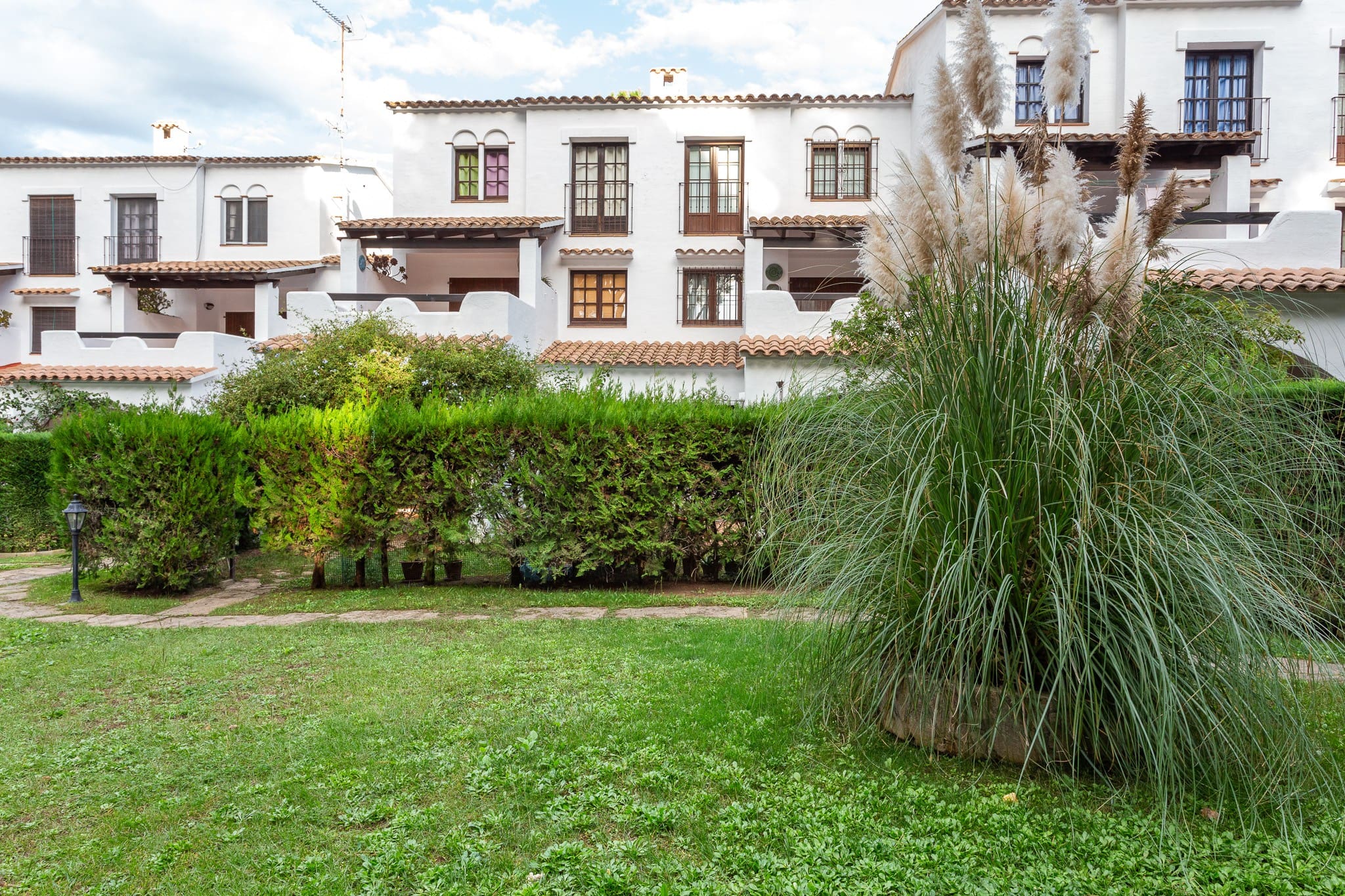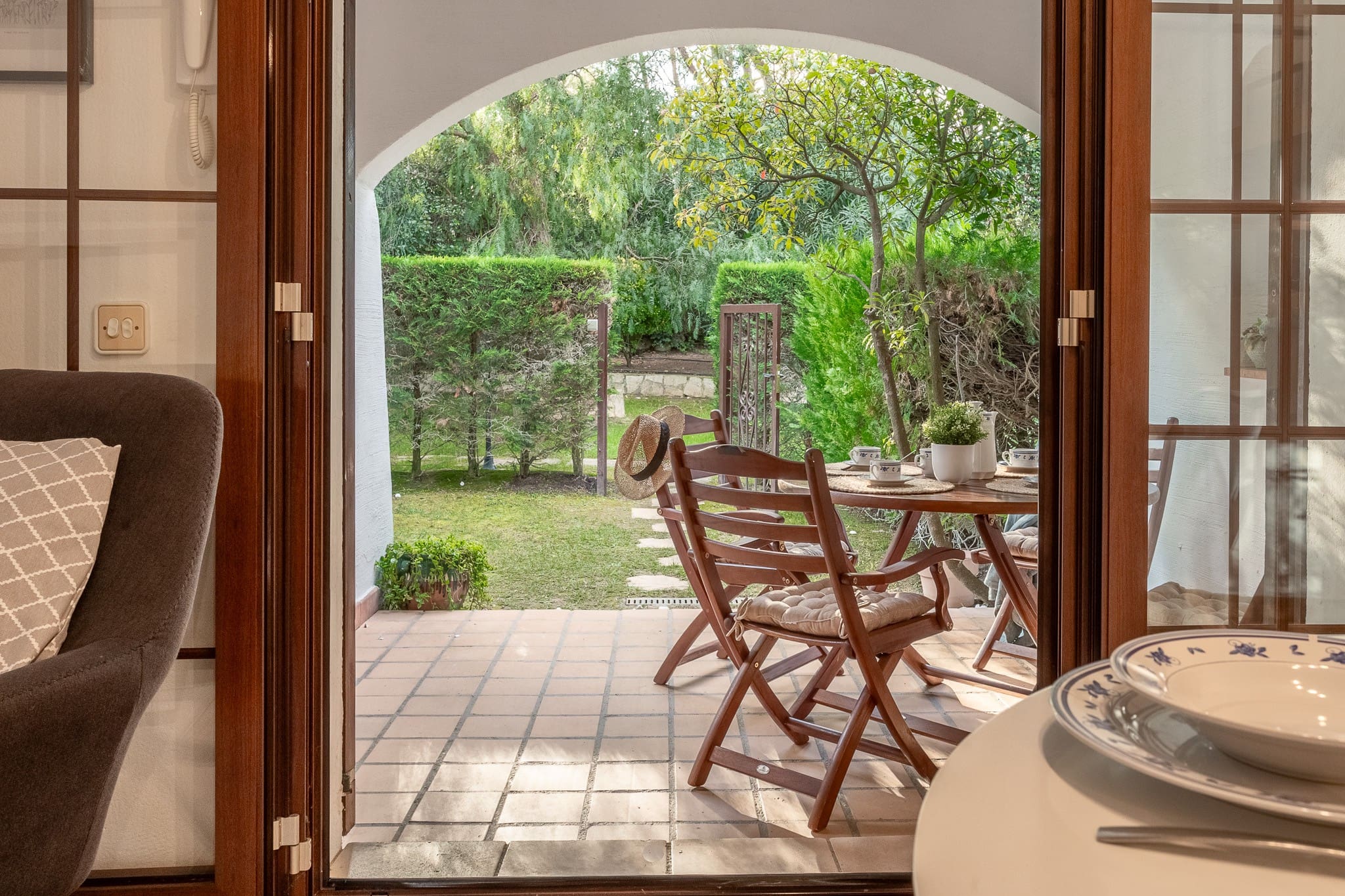La verdadera joya de Clover es su terraza con parcela de jardín privada. Es el rincón perfecto para disfrutar de un desayuno al aire libre o de una lectura tranquila bajo el sol. Además, desde tu propio jardín tienes acceso directo a la zona comunitaria, donde te espera una preciosa piscina rodeada de un cuidado jardín mediterráneo.