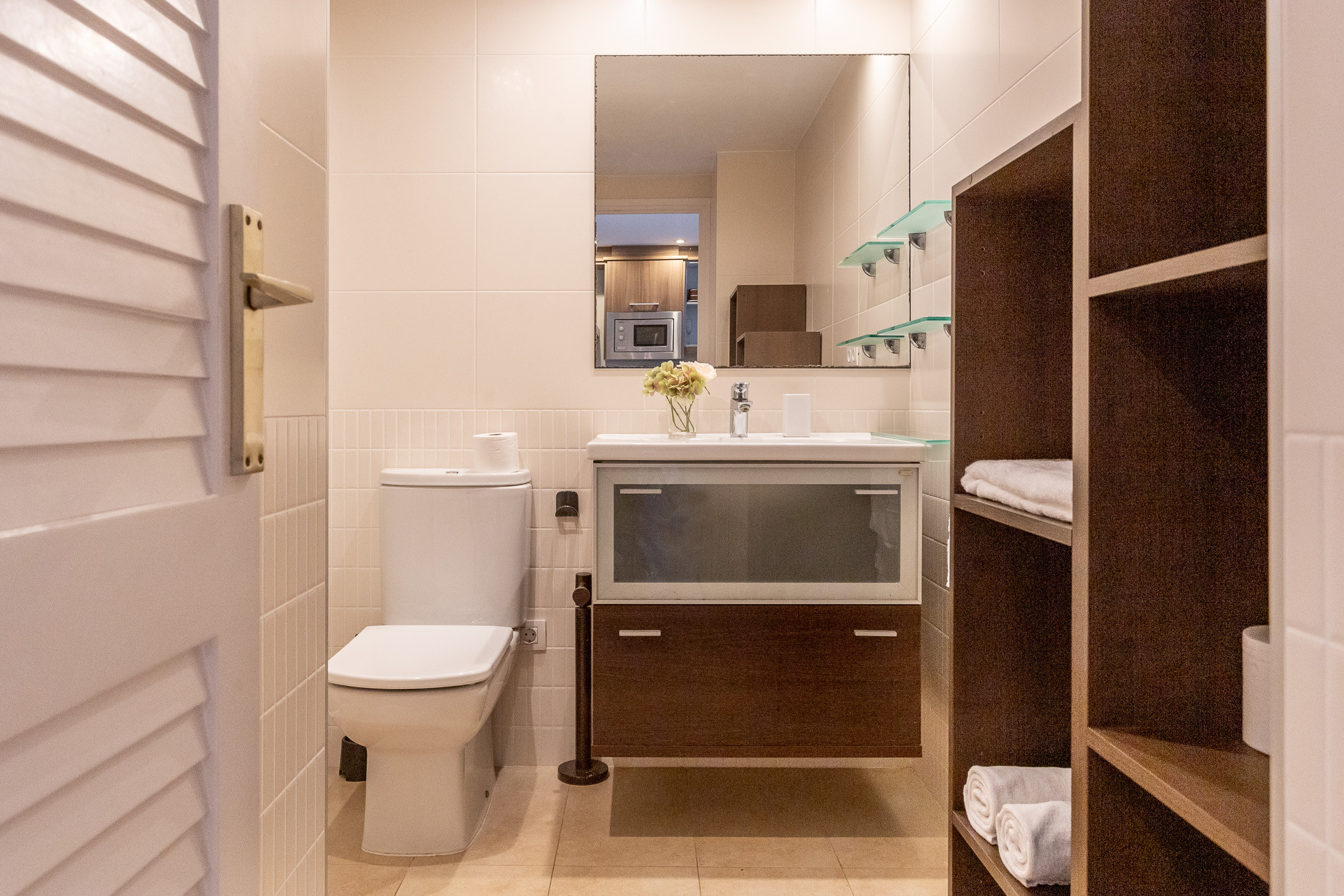 Cocina independiente totalmente equipada (nevera, congelador, lavadora, cafetera, horno y microondas) con todo el menaje necesario para sentirte como en casa.