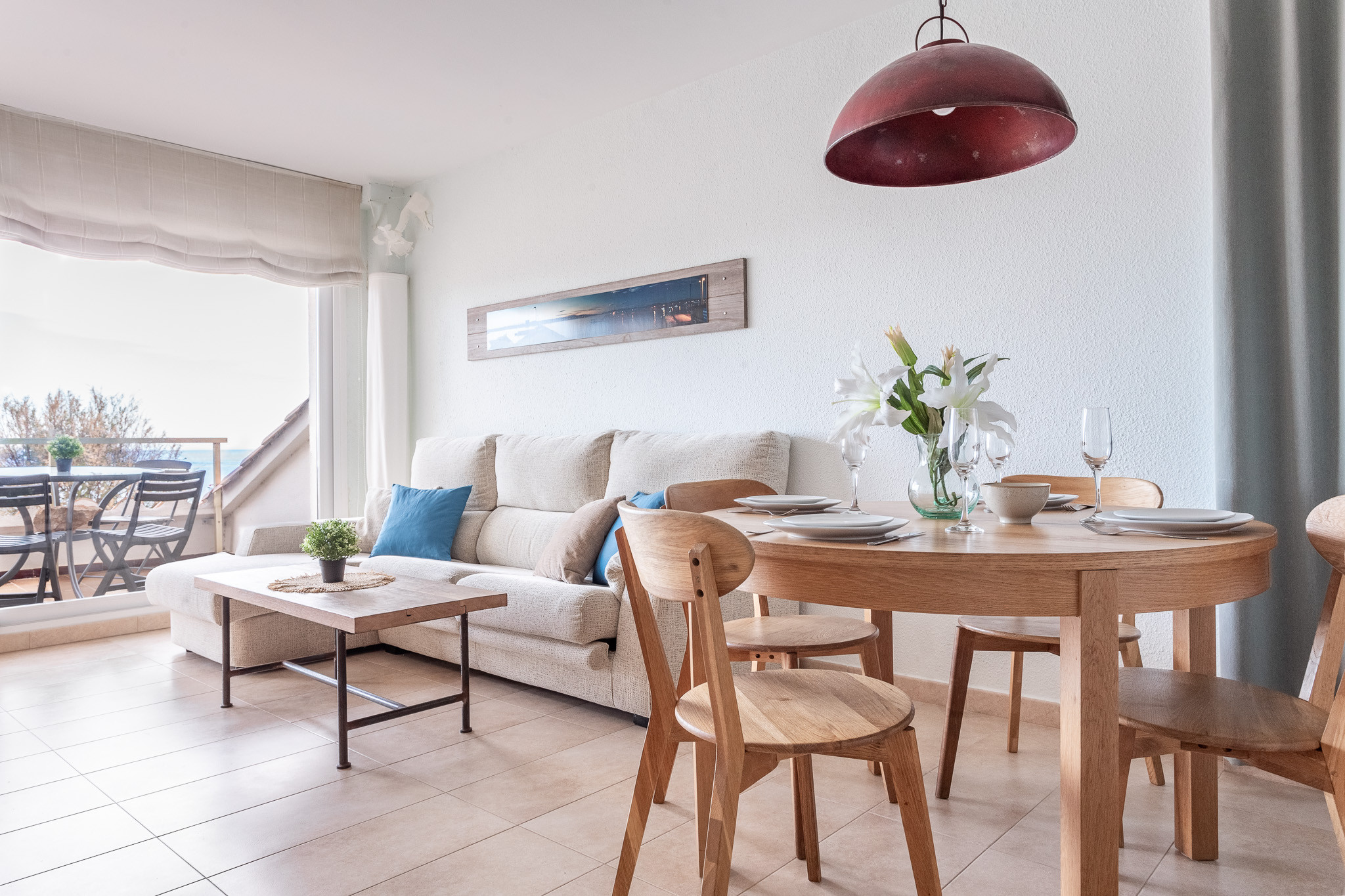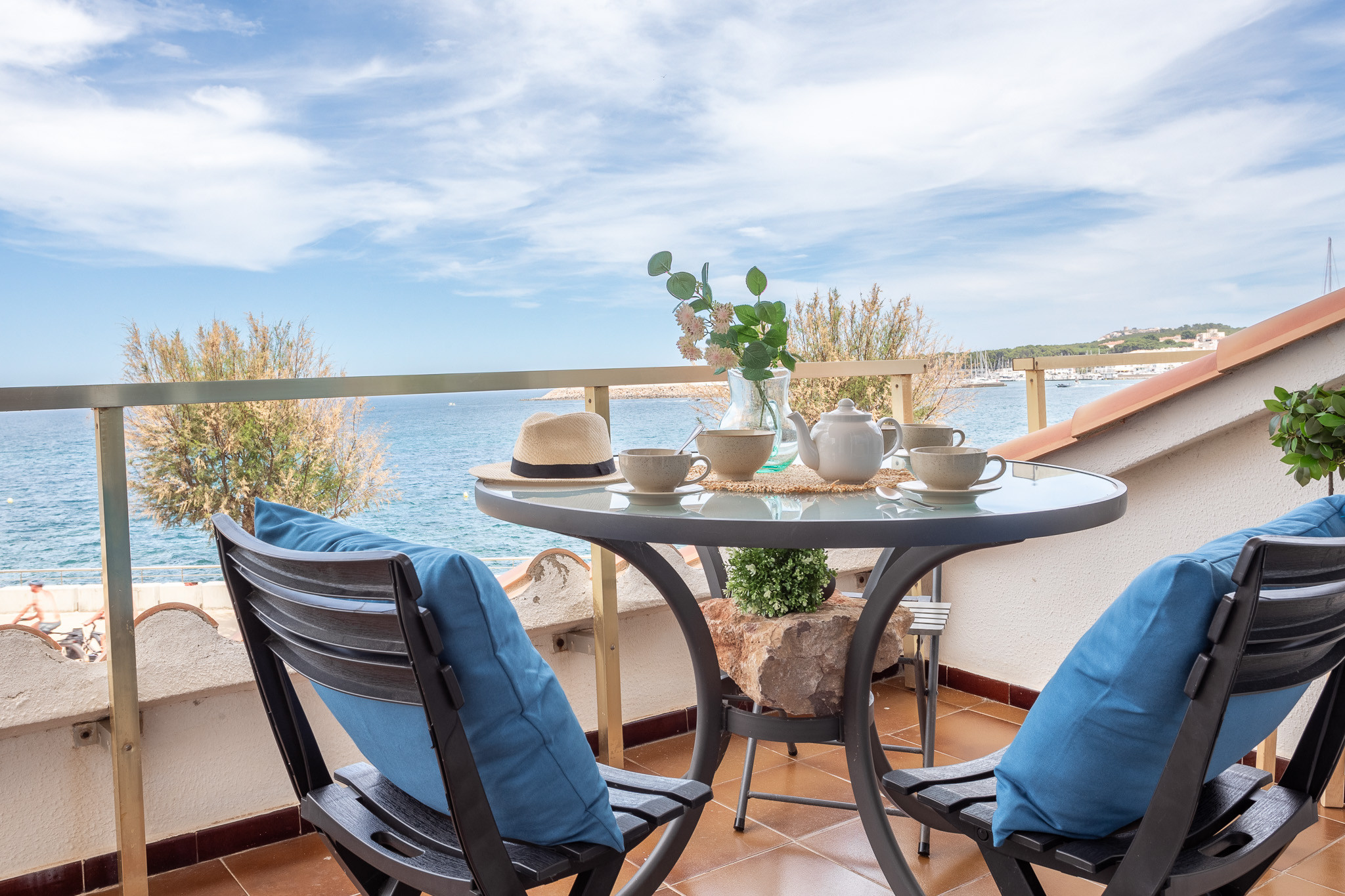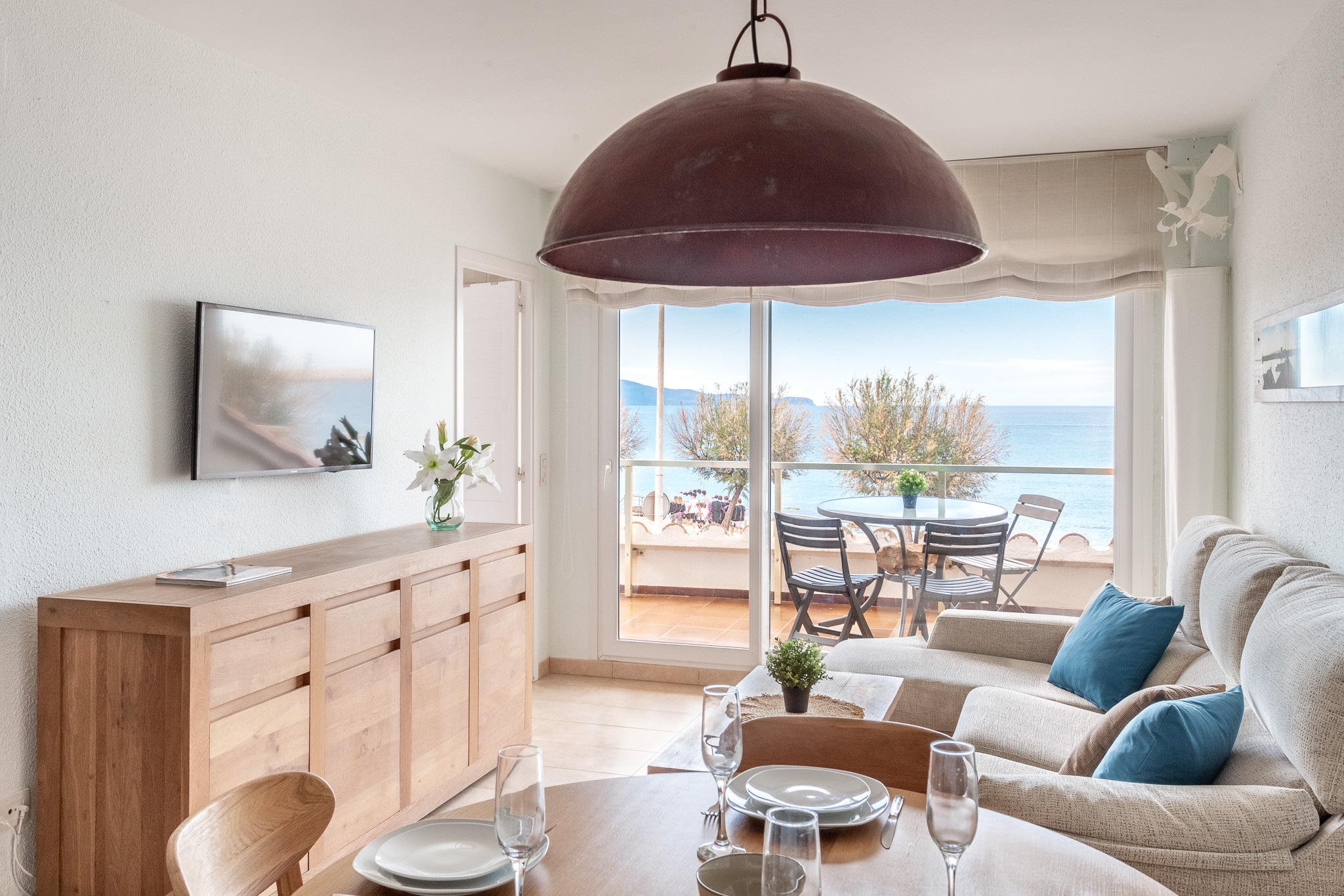 Su joya es la terraza con vistas al mar, perfecta para desayunar al aire libre. Para los días de invierno, la chimenea aporta un toque cálido y especial, mientras que el aire acondicionado y la calefacción (bomba de calor) garantizan el confort total durante todo el año.