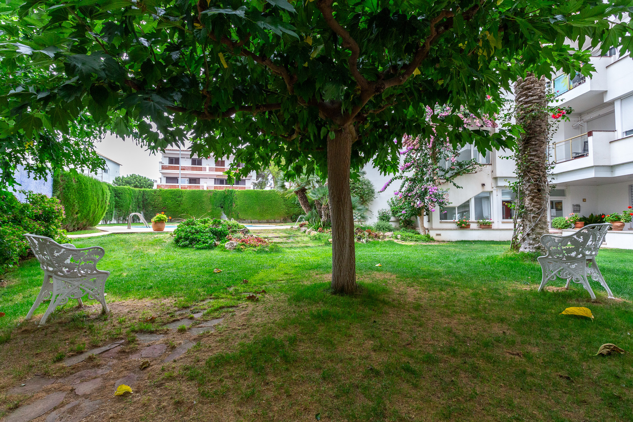 El complejo donde esta el apartamento tiene un jardín precioso y tranquilo con una piscina comunitaria. El edificio tiene ascensor y aparcamiento de bicicletas.