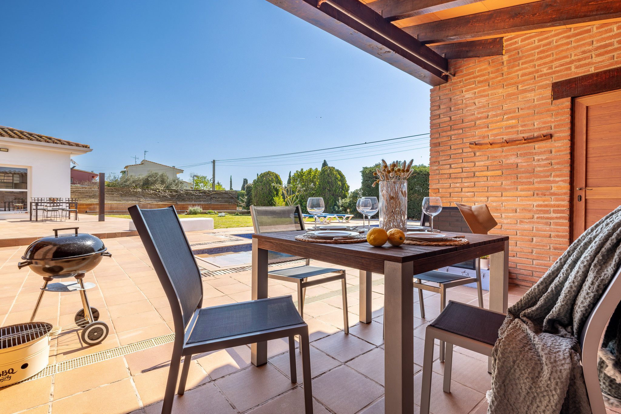 À l'extérieur, sa piscine privée et son grand jardin se distinguent, où les enfants et les adultes peuvent profiter du plein air en toute tranquillité.