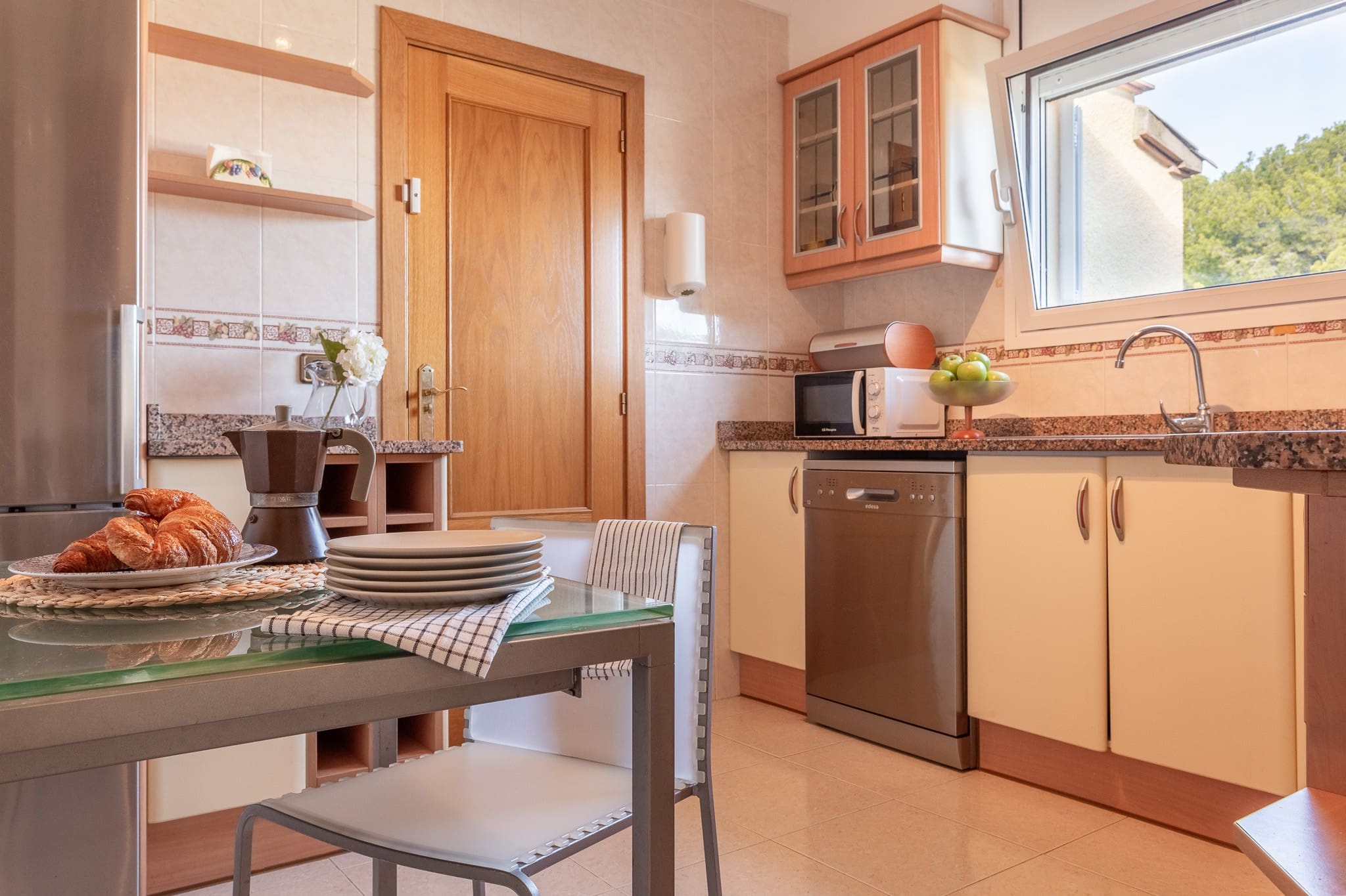 Cuisine entièrement équipée, avec le confort indispensable du lave-vaisselle.