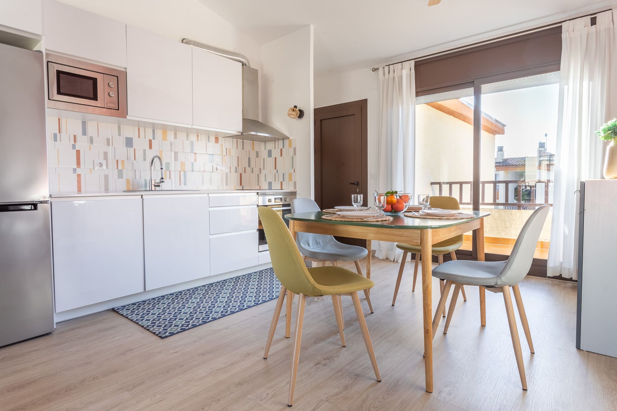 Saló-menjador lluminós, bany complet i una cuina equipada amb tot el necessari per als teus plats preferits. I perquè la teva estada sigui rodona, incloem connexió WiFi gratuïta, Smart TV i una plaça d'aparcament privada, fonamental per gaudir de L'Escala amb total llibertat.